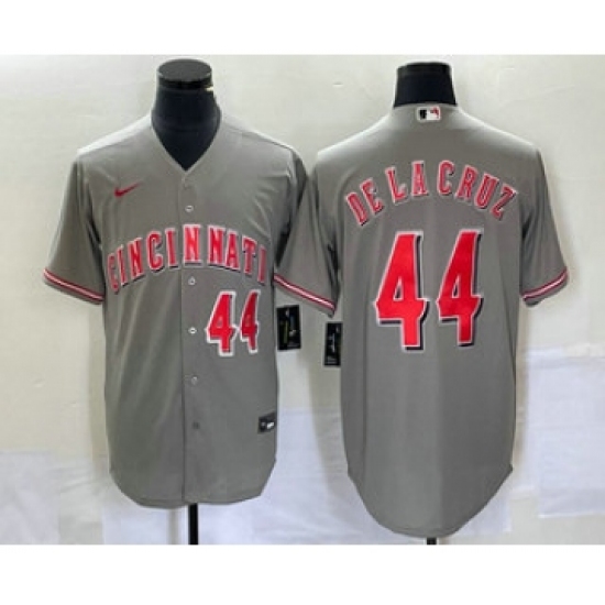 Men's Nike Cincinnati Reds #44 Elly De La Cruz Number Grey Cool Base Stitched Baseball Jersey