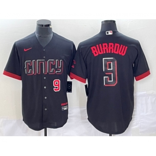 Men's Nike Cincinnati Reds #9 Joe Burrow Black 2023 City Connect Cool Base Stitched Baseball Jersey