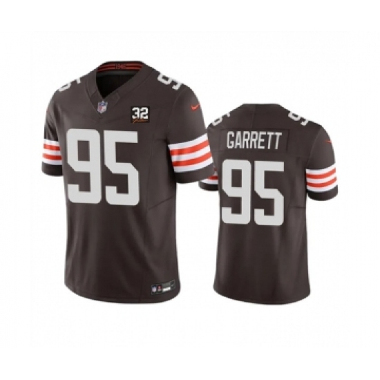 >Men's Nike Cleveland Browns #95 Myles Garrett Brown 2023 F.U.S.E. Jim Brown Memorial Vapor Untouchable Limited Football Stitched Jersey