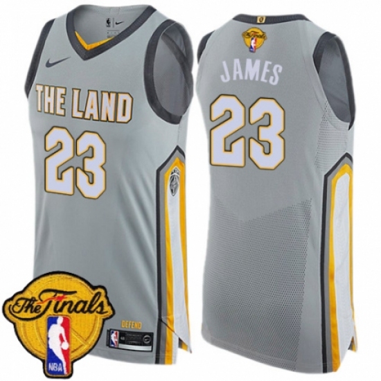 >Men's Nike Cleveland Cavaliers #23 LeBron James Authentic Gray 2018 NBA Finals Bound NBA Jersey - City Edition