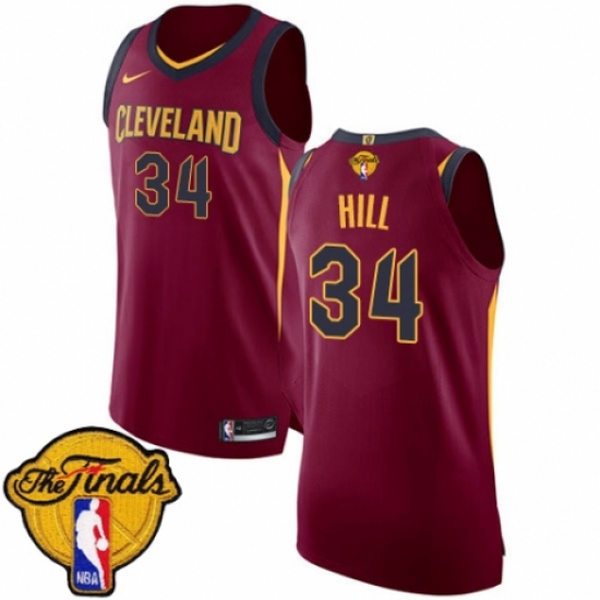 Men's Nike Cleveland Cavaliers #34 Tyrone Hill Authentic Maroon 2018 NBA Finals Bound NBA Jersey - Icon Edition