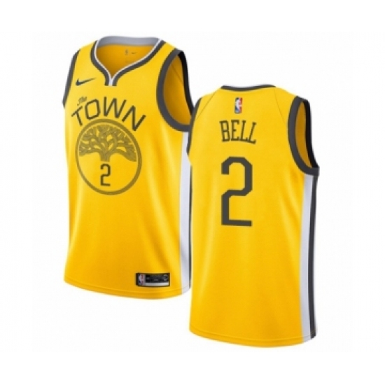 >Men's Nike Golden State Warriors #2 Jordan Bell Yellow Swingman Jersey - Earned Edition