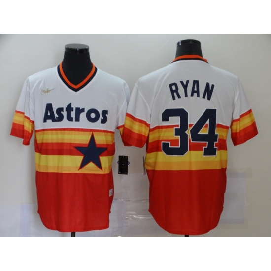 Men's Nike Houston Astros #34 Nolan Ryan Authentic White-Orange Throwback Jersey