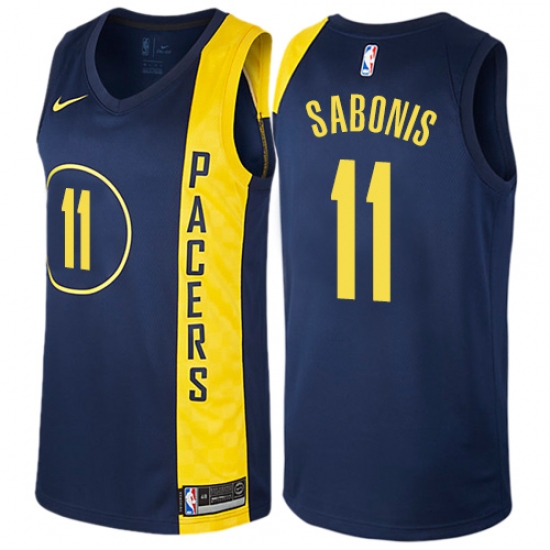 Home>NBA>Indiana Pacers>Domantas Sabonis>Men's Nike Indiana Pacers #11 Domantas Sabonis Authentic Navy Blue NBA Jersey - City Edition