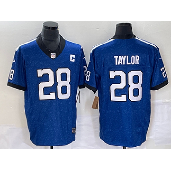 Men's Indianapolis Colts #28 Jonathan Taylor Blue 2025 F.U.S.E. Jim Irsay Vapor Limited Football Stitched Jersey