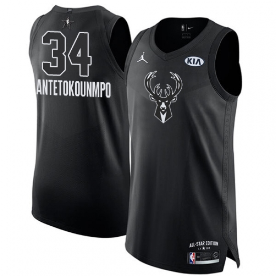 Home>NBA>Milwaukee Bucks>Giannis Antetokounmpo>Men's Nike Jordan Milwaukee Bucks #34 Giannis Antetokounmpo Authentic Black 2018 All-Star Game NBA Jersey