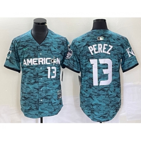 Men's Nike Kansas City Royals #13 Salvador Perez Teal 2023 All Star Cool Base Stitched Baseball Jersey
