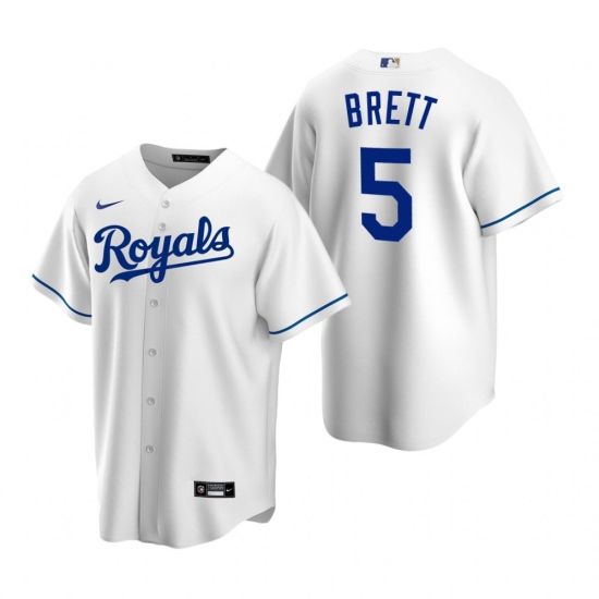 Men's Nike Kansas City Royals #5 George Brett White Home Stitched Baseball Jersey