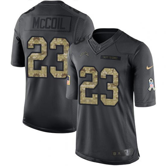 Home>NFL>Los Angeles Chargers>Dexter McCoil>Men's Nike Los Angeles Chargers #23 Dexter McCoil Limited Black 2016 Salute to Service NFL Jersey