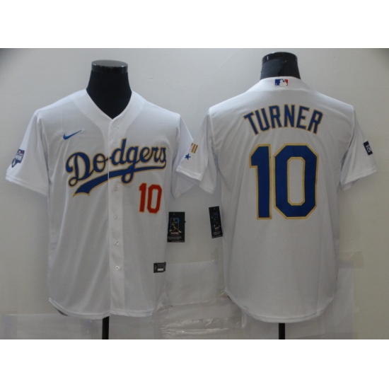 Men's Los Angeles Dodgers #10 Justin Turner White 2020 World Series Champions Replica Jersey