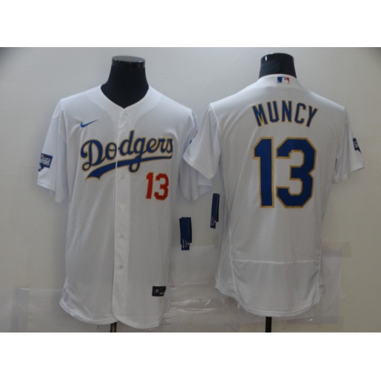 Men's Los Angeles Dodgers #13 Max Muncy Number White Cool Base Stitched Baseball Jersey