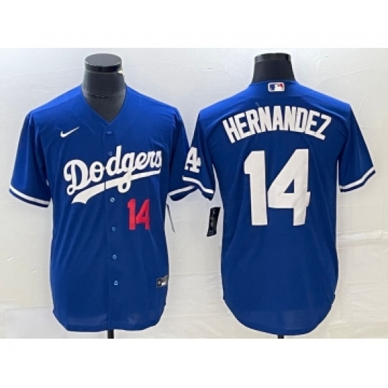 Men's Nike Los Angeles Dodgers #14 Enrique Hernandez Number Blue Stitched Cool Base Jersey