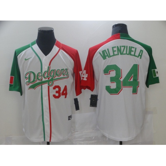 >Men's Nike Los Angeles Dodgers #34 Fernando Valenzuela White Home Stitched Baseball Alternate Jersey