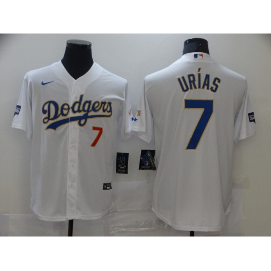Men's Los Angeles Dodgers #7 Julio Urias White Blue Fashion Stitched Cool Base Limited Jersey