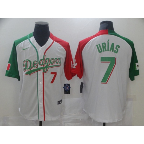 >Men's Nike Los Angeles Dodgers #7 Julio Urias White Home Stitched Baseball Alternate Jersey