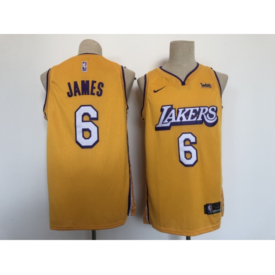 Men's Nike Los Angeles Lakers #6 LeBron James Yellow City Swingman Association Edition Jersey