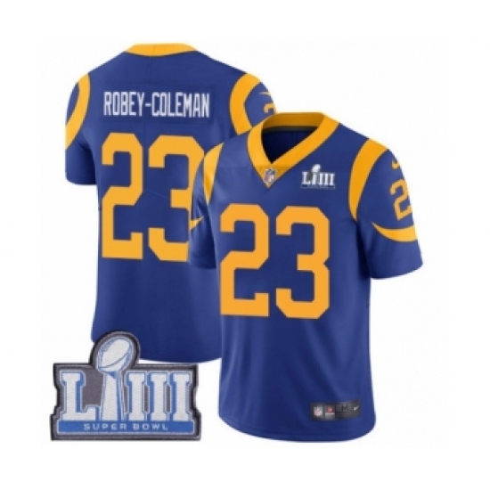 >Men's Nike Los Angeles Rams #23 Nickell Robey-Coleman Royal Blue Alternate Vapor Untouchable Limited Player Super Bowl LIII Bound NFL Jersey