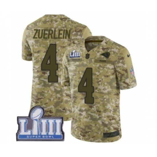Men's Nike Los Angeles Rams #4 Greg Zuerlein Limited Camo 2018 Salute to Service Super Bowl LIII Bound NFL Jersey