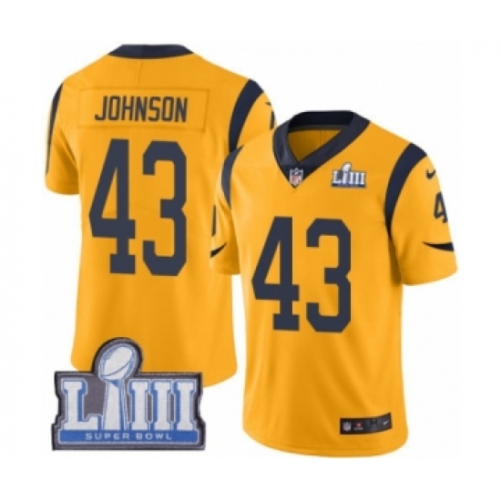 >Men's Nike Los Angeles Rams #43 John Johnson Limited Gold Rush Vapor Untouchable Super Bowl LIII Bound NFL Jersey