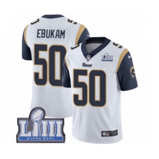 Men's Nike Los Angeles Rams #50 Samson Ebukam White Vapor Untouchable Limited Player Super Bowl LIII Bound NFL Jersey