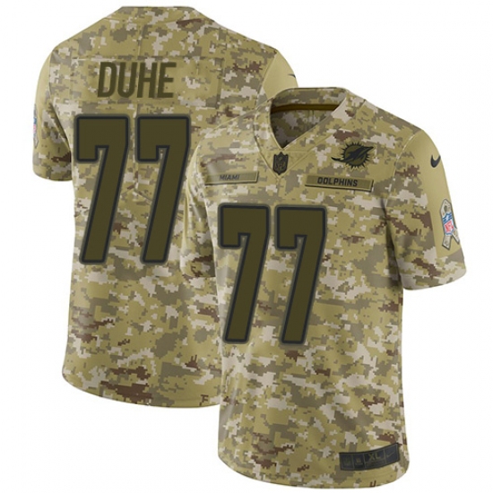 >Men's Nike Miami Dolphins #77 Adam Joseph Duhe Limited Camo 2018 Salute to Service NFL Jersey