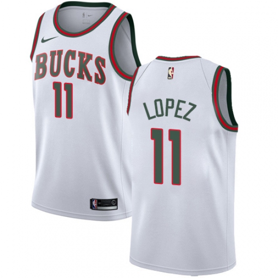 >Men's Nike Milwaukee Bucks #11 Brook Lopez Swingman White Fashion Hardwood Classics NBA Jersey