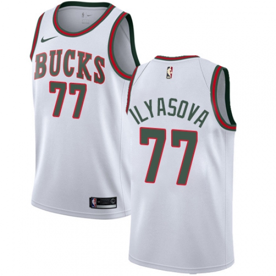 >Men's Nike Milwaukee Bucks #77 Ersan Ilyasova Swingman White Fashion Hardwood Classics NBA Jersey