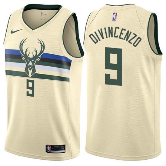 >Men's Nike Milwaukee Bucks #9 Donte DiVincenzo Swingman Cream NBA Jersey - City Edition