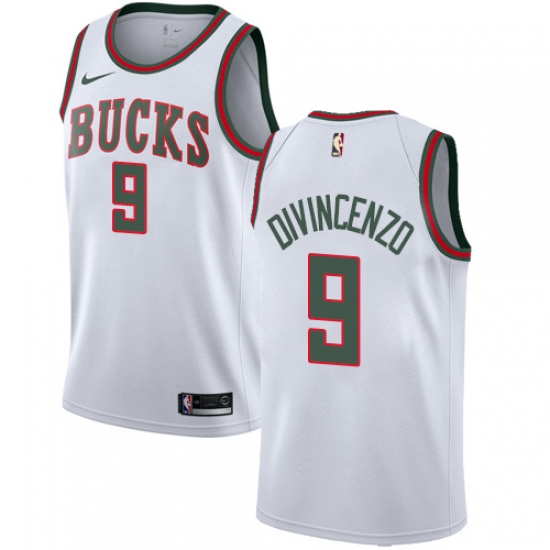 Men's Nike Milwaukee Bucks #9 Donte DiVincenzo Swingman White Fashion Hardwood Classics NBA Jersey