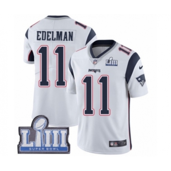 Men's Nike New England Patriots #11 Julian Edelman White Vapor Untouchable Limited Player Super Bowl LIII Bound NFL Jersey
