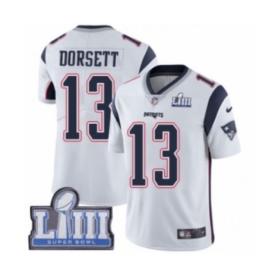Men's Nike New England Patriots #13 Phillip Dorsett White Vapor Untouchable Limited Player Super Bowl LIII Bound NFL Jersey