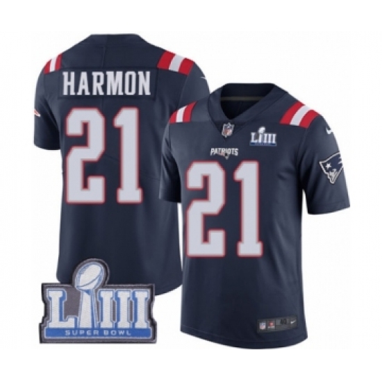 Men's Nike New England Patriots #21 Duron Harmon Limited Navy Blue Rush Vapor Untouchable Super Bowl LIII Bound NFL Jersey