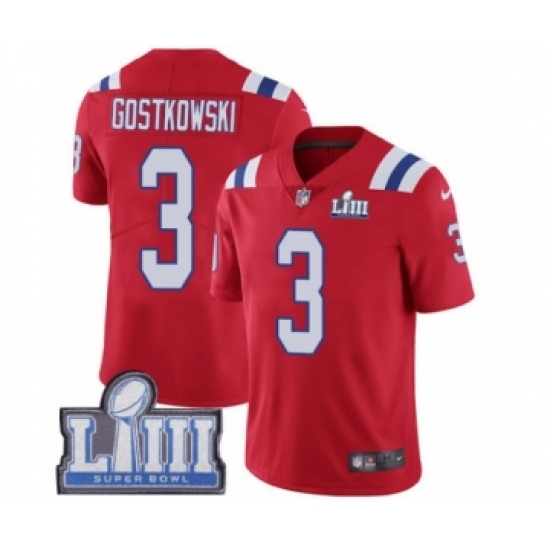 >Men's Nike New England Patriots #3 Stephen Gostkowski Red Alternate Vapor Untouchable Limited Player Super Bowl LIII Bound NFL Jersey