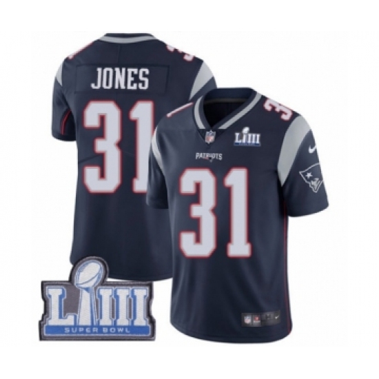 Men's Nike New England Patriots #31 Jonathan Jones Navy Blue Team Color Vapor Untouchable Limited Player Super Bowl LIII Bound NFL Jersey