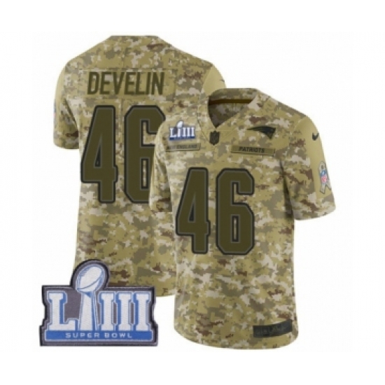 Men's Nike New England Patriots #46 James Develin Limited Camo 2018 Salute to Service Super Bowl LIII Bound NFL Jersey