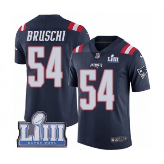 Men's Nike New England Patriots #54 Tedy Bruschi Limited Navy Blue Rush Vapor Untouchable Super Bowl LIII Bound NFL Jersey