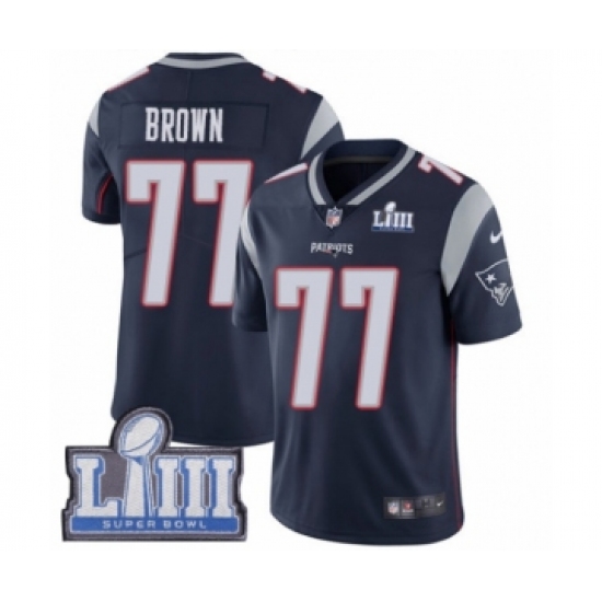 Men's Nike New England Patriots #77 Trent Brown Navy Blue Team Color Vapor Untouchable Limited Player Super Bowl LIII Bound NFL Jersey