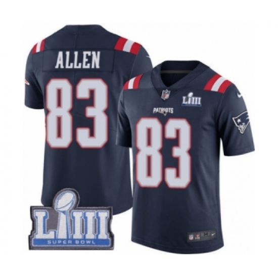 Men's Nike New England Patriots #83 Dwayne Allen Limited Navy Blue Rush Vapor Untouchable Super Bowl LIII Bound NFL Jersey