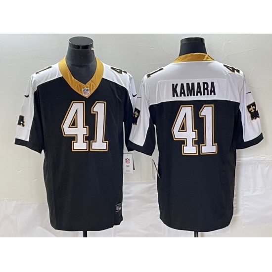 >Men's Nike New Orleans Saints #41 Alvin Kamara Black-White 2023 F.U.S.E. Vapor Untouchable Stitched Football Jersey