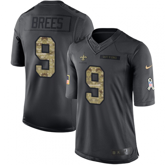 Home>NFL>New Orleans Saints>Drew Brees>Men's Nike New Orleans Saints #9 Drew Brees Limited Black 2016 Salute to Service NFL Jersey