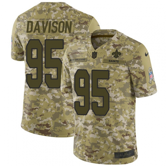 >Men's Nike New Orleans Saints #95 Tyeler Davison Limited Camo 2018 Salute to Service NFL Jersey
