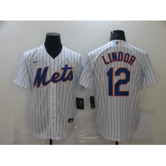 Men's Nike New York Mets #12 Francisco Lindor White stripes Jersey