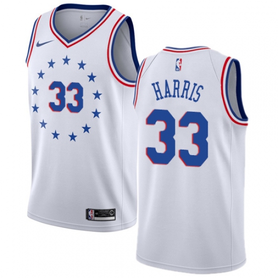 >Men's Nike Philadelphia 76ers #33 Tobias Harris White NBA Swingman Earned Edition Jersey