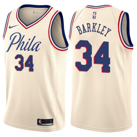Men's Nike Philadelphia 76ers #34 Charles Barkley Authentic Cream NBA Jersey - City Edition