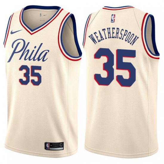 Home>NBA>Philadelphia 76ers>Clarence Weatherspoon>Men's Nike Philadelphia 76ers #35 Clarence Weatherspoon Swingman Cream NBA Jersey - City Edition