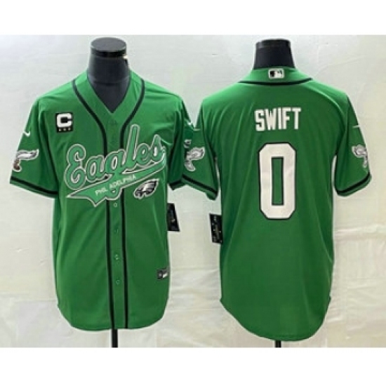 >Men's Nike Philadelphia Eagles #0 DAndre Swift Green C Cool Base Stitched Baseball Jersey