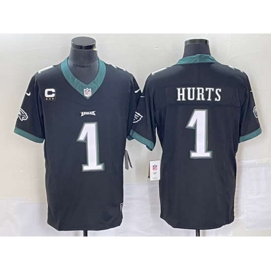 Men's Nike Philadelphia Eagles #1 Jalen Hurts Black 2023 F.U.S.E. Vapor Untouchable C Stitched Football Jerseys