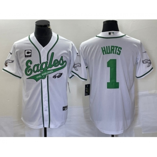 Men's Nike Philadelphia Eagles #1 Jalen Hurts White C Cool Base Stitched Baseball Jersey1