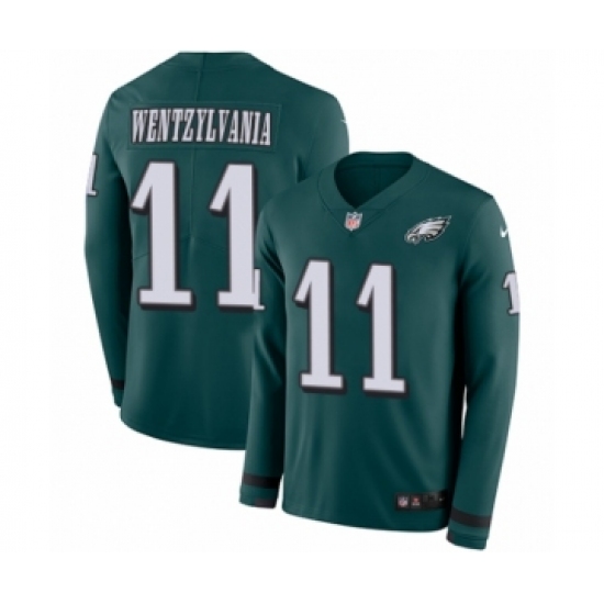 Men's Nike Philadelphia Eagles #11 Carson Wentz Limited Green Therma Long Sleeve Wentzylvania NFL Jersey