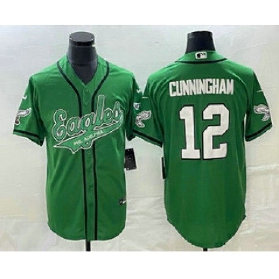 >Men's Nike Philadelphia Eagles #12 Randall Cunningham Green Cool Base Stitched Baseball Jersey